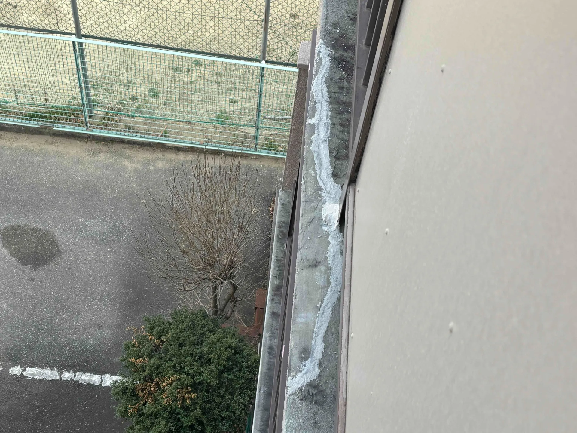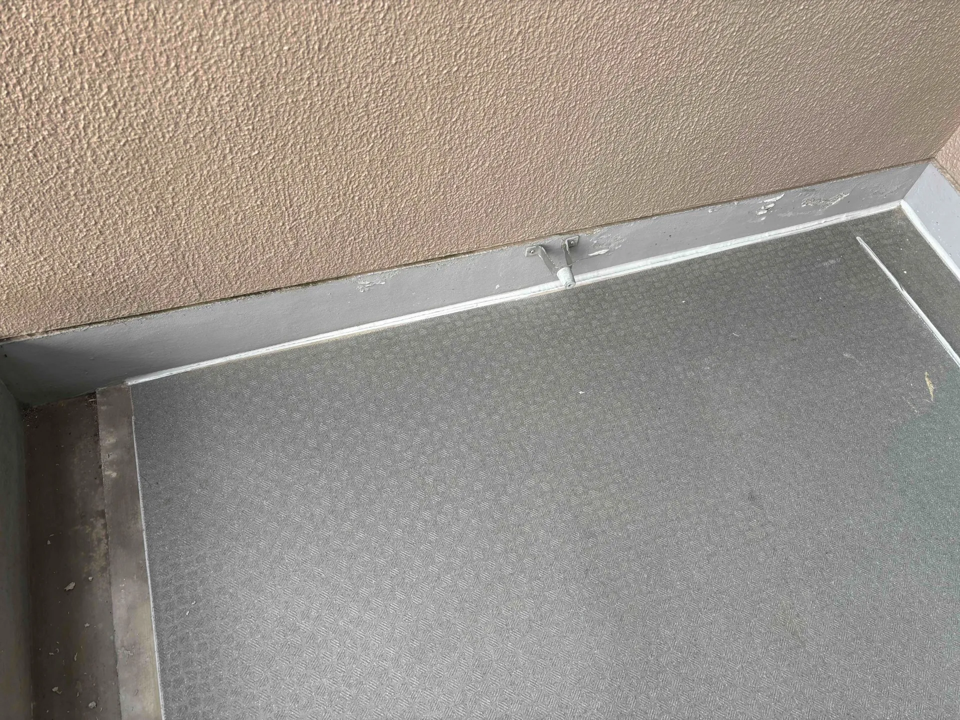 共用廊下の床が剥がれている部分には、新しくシーリングを打って補修を行いました。