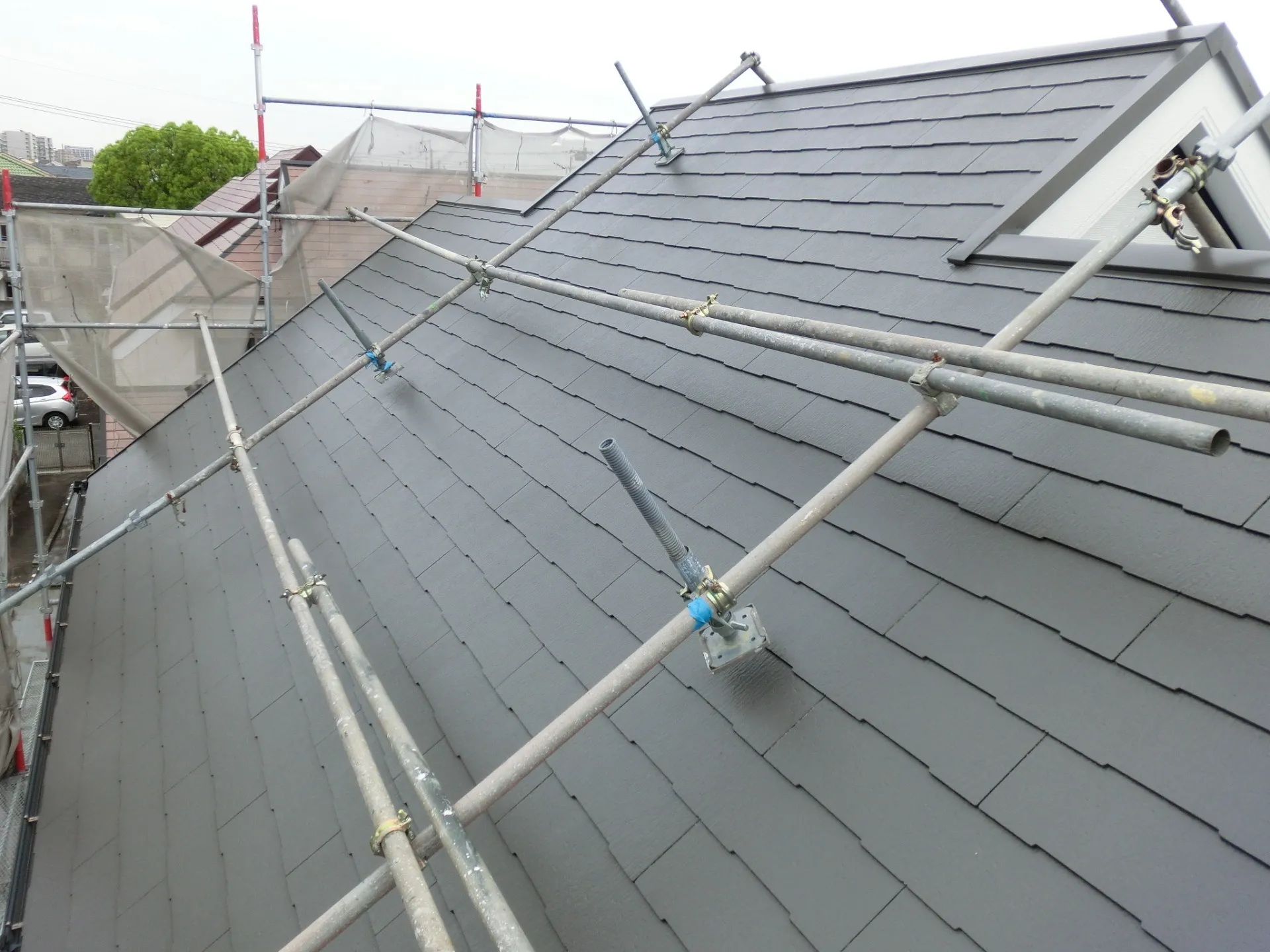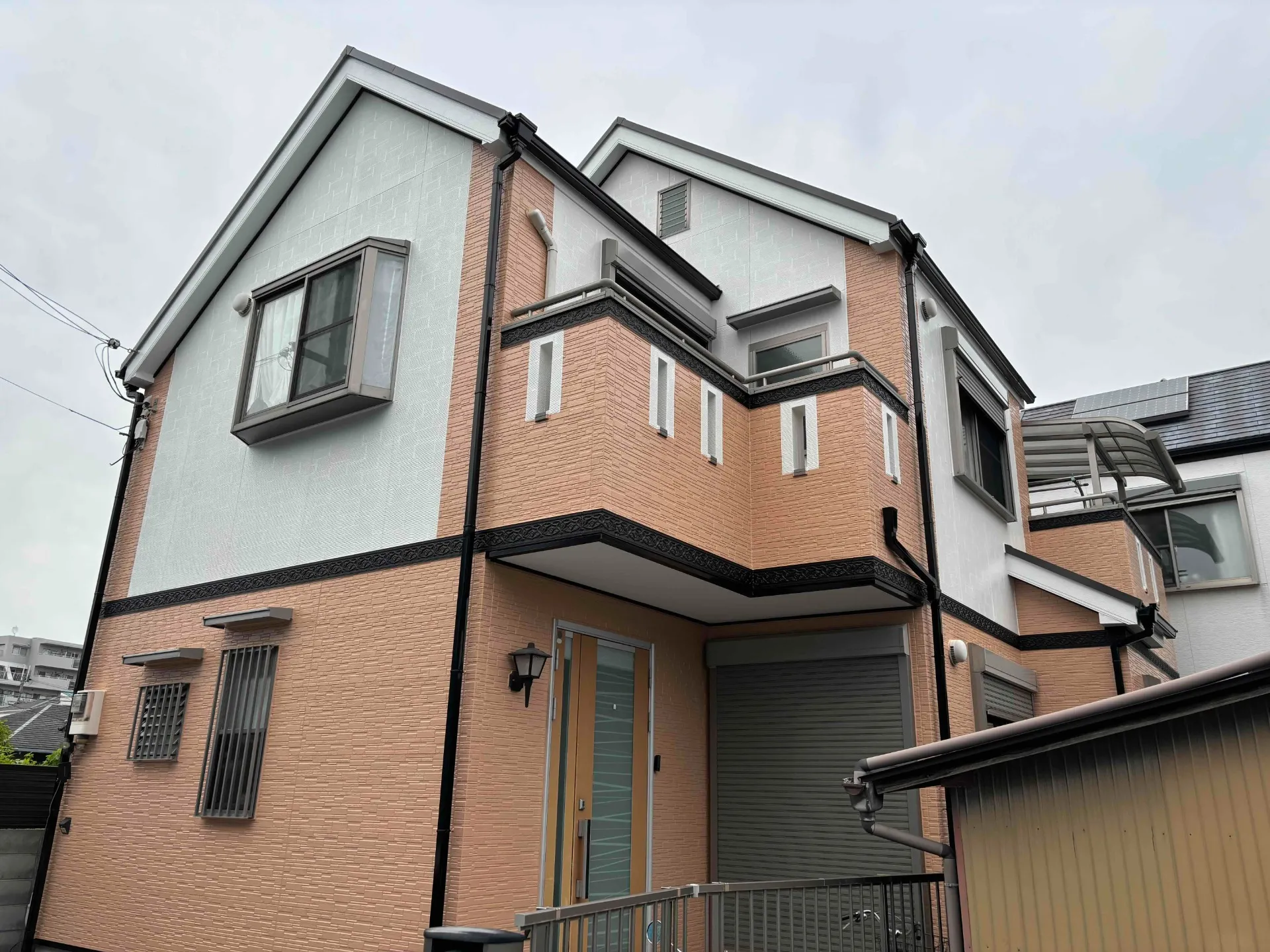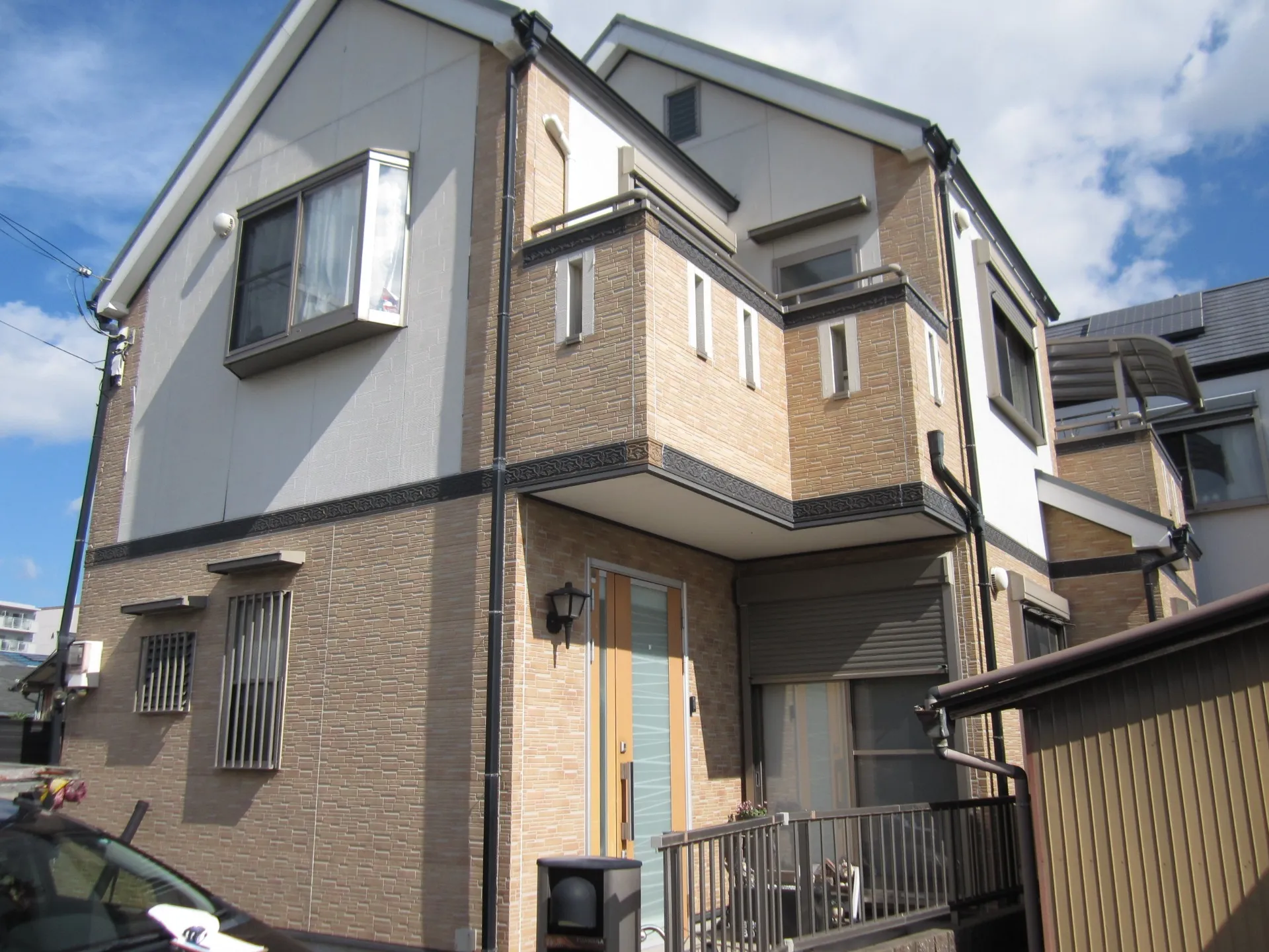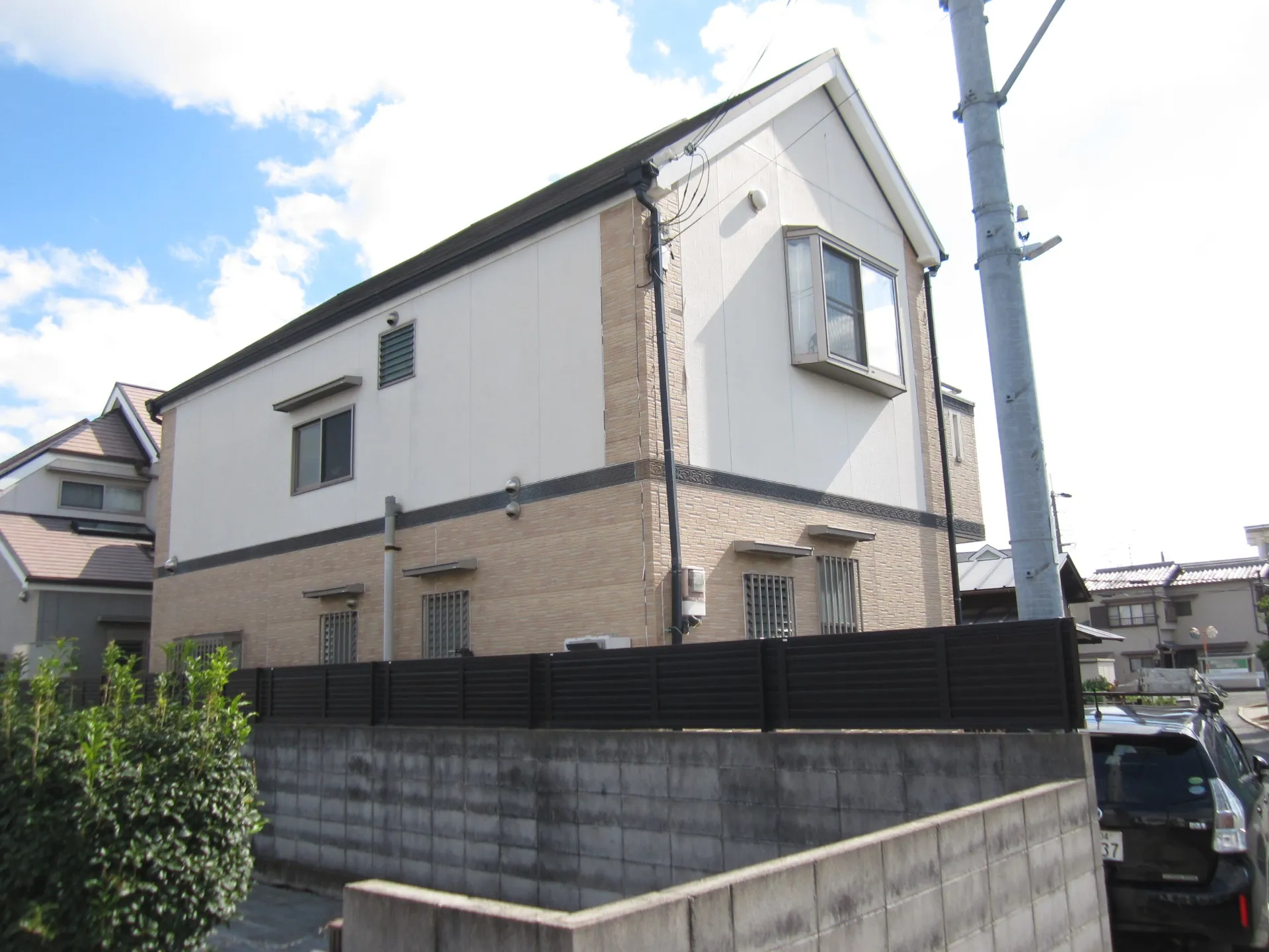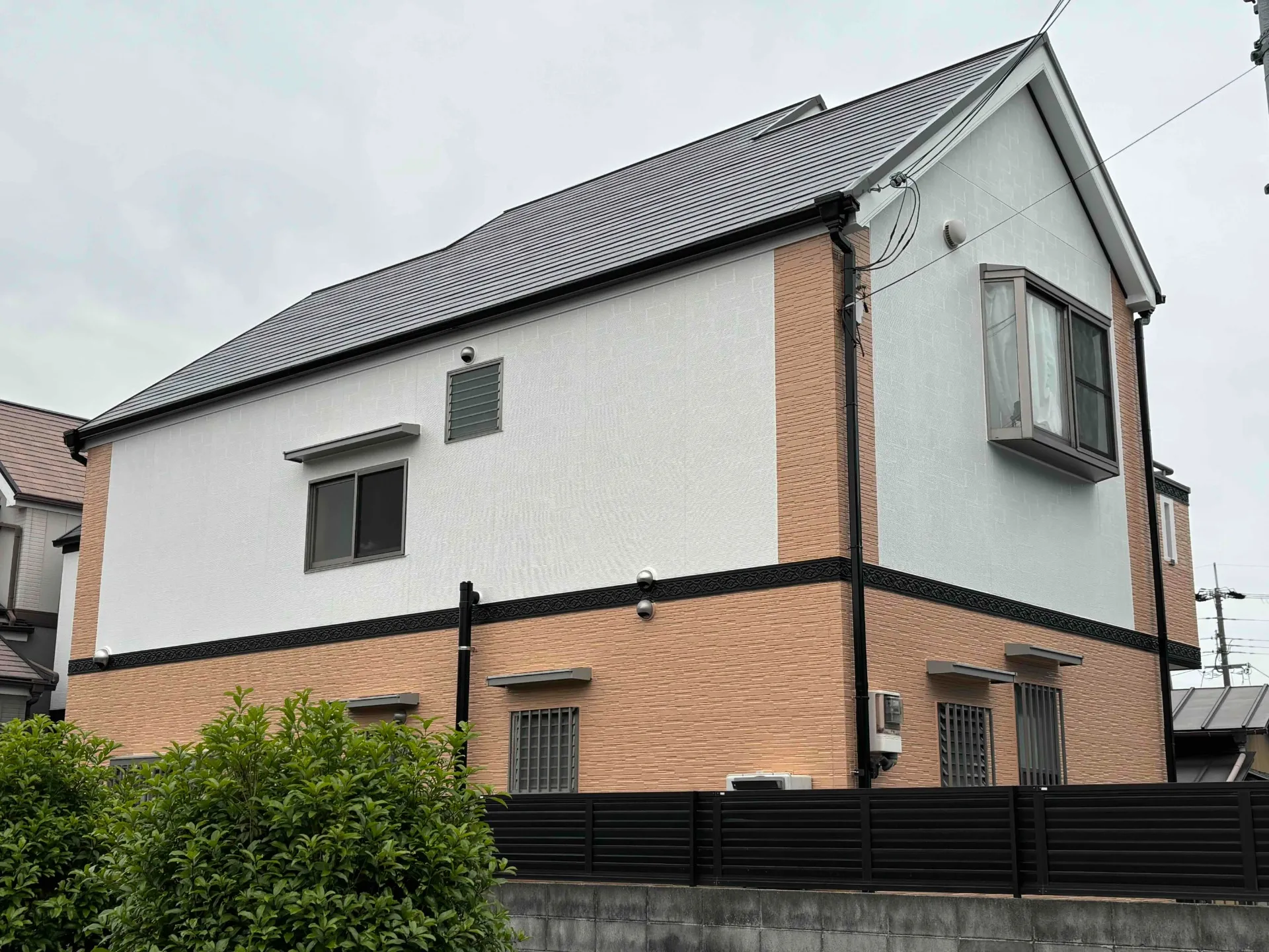 洋風な雰囲気のご自宅にぴったり合う色の組み合わせをお選び頂き、それに付帯部分の黒色が丁度良いアクセントとなり、凄くお洒落なご自宅へと生まれ変わりました。