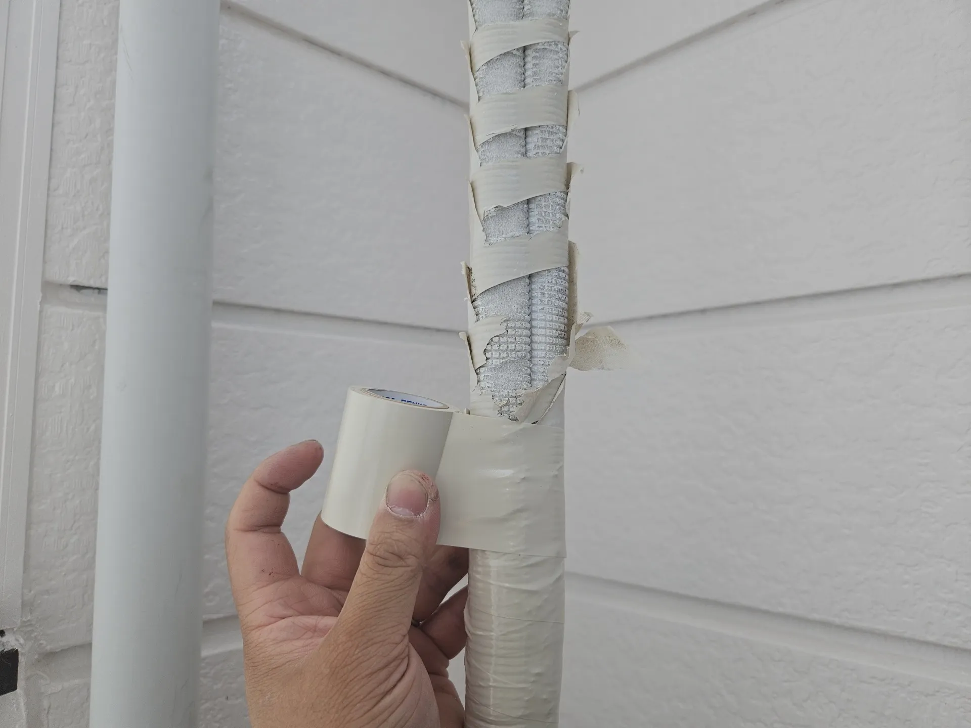 兵庫県神戸市東灘区T様邸 色々な作業を行っております 来週の足場解体工事を前に、色々な作業を進めております。エアコンホースのテープが劣化して剥がれておりましたので、新しいテープに巻き直しを行っておりますお隣様のご自宅の雨樋が詰まっていて、雨水…
