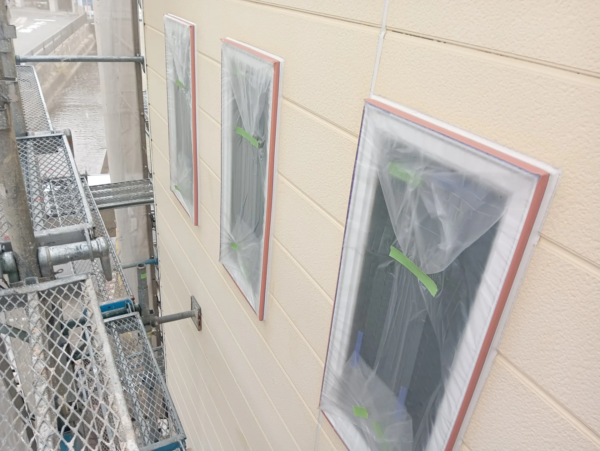 兵庫県川西市F様邸 屋根の下塗り塗装を進めております 屋根の下塗り塗装を行いました。最近は急に雨が降ってくる事が多い為、屋根に関しては特に塗装のタイミングが重要です並行してビニール養生作業も完了しております