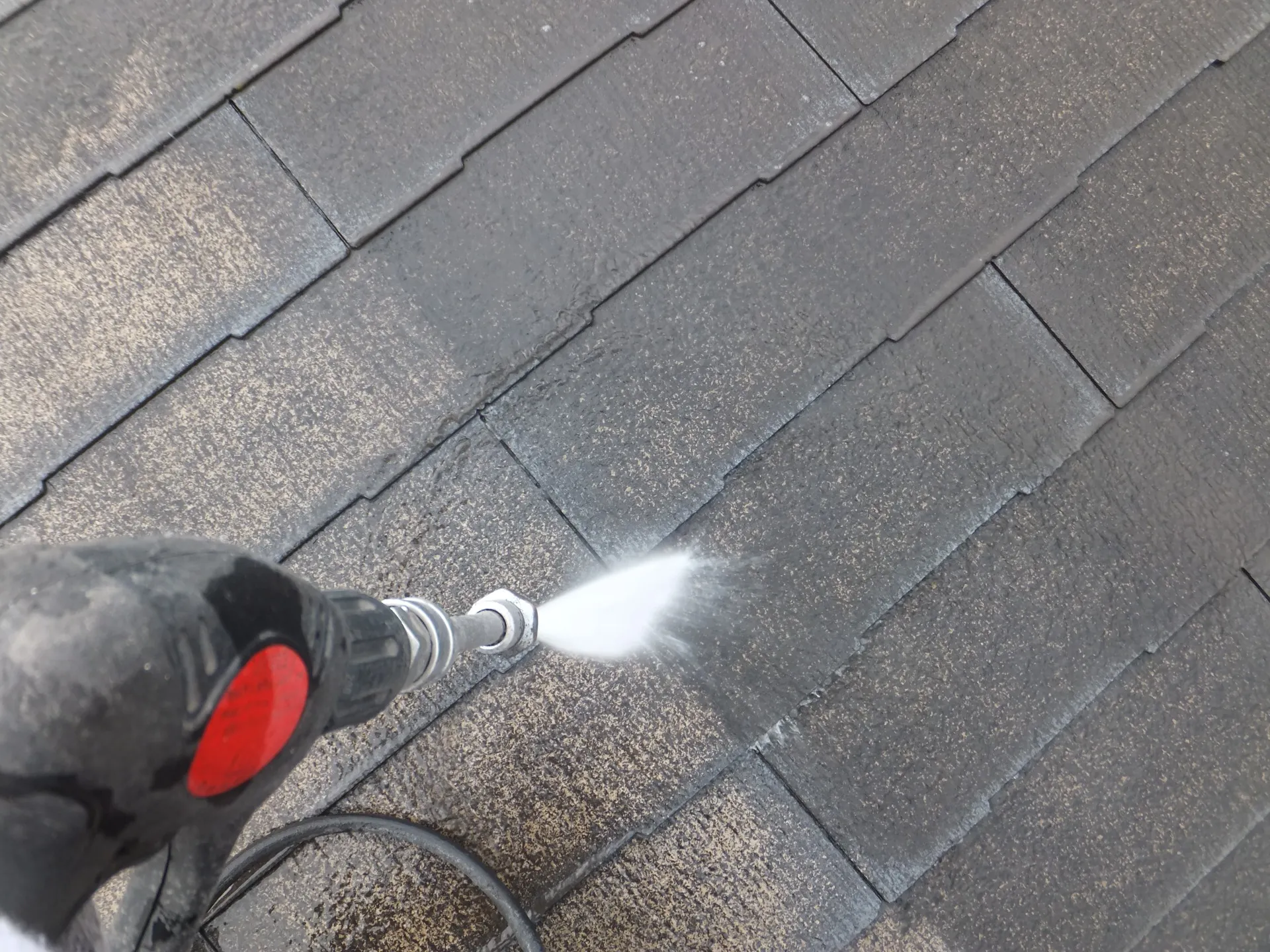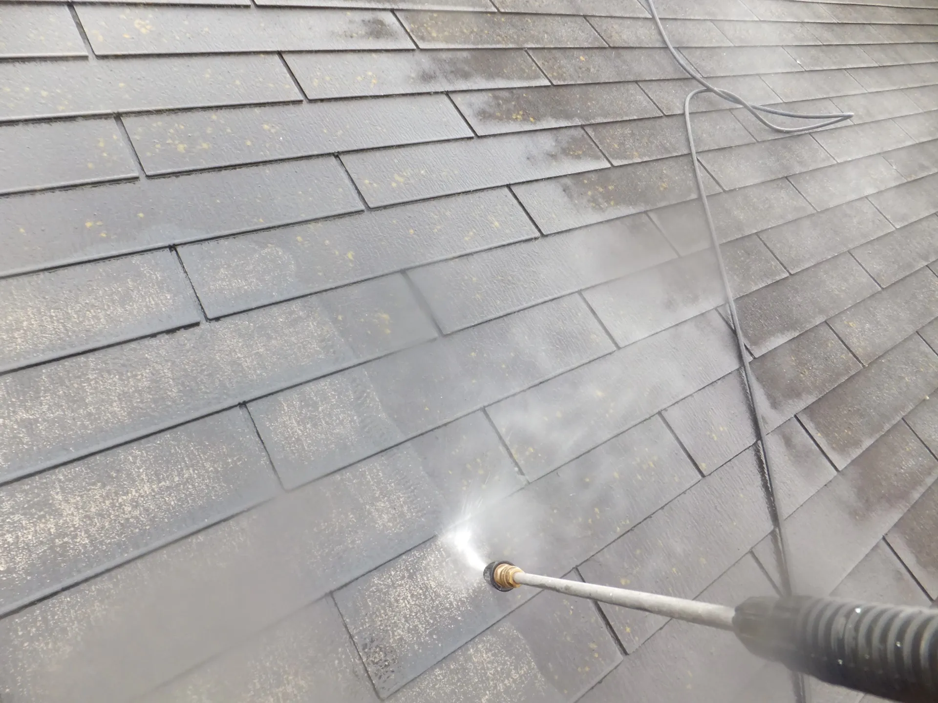 先日の足場工事が終わり、本日は高圧洗浄の作業を進めております